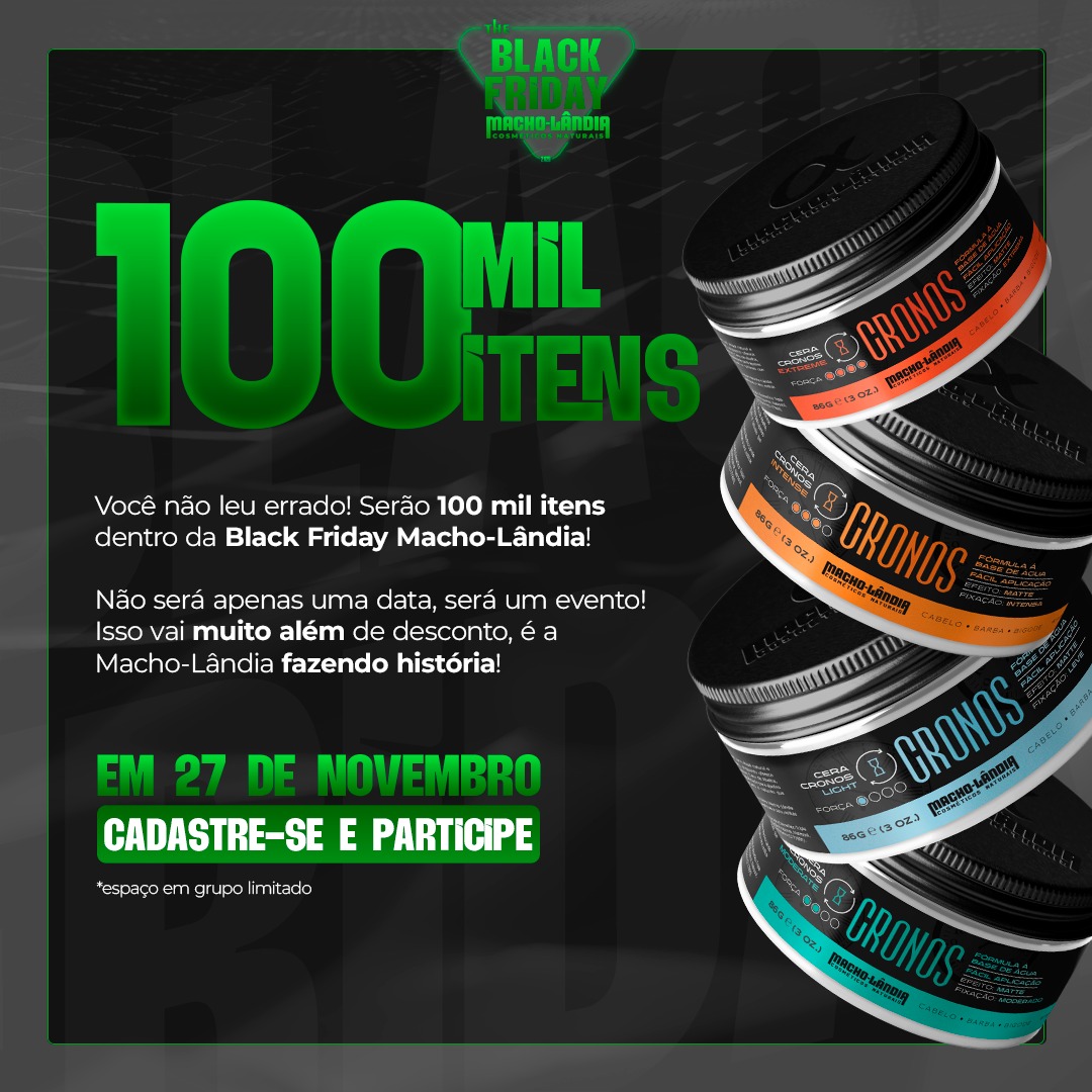 "The Black Friday Macho-Lândia 2025" Terá a duração de 24 horas a partir de 00h do dia 27 de Novembro de 2025. Durante esse período, se prepare para adquirir os melhores produtos para você trabalhar como merece, e oferecer qualidade para o seu cliente.